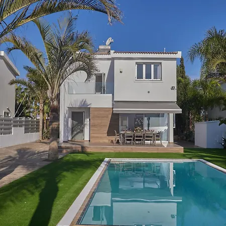 Situada situado dentro de bares y restaurantes, la Sunrise Villas cuenta con una piscina en la que los huéspedes pueden disfrutar de terraza soleada. Esta villa, que ofrece a sus huéspedes WiFi y un aparcamiento, está a 900 metros de la Playa de Ayia Thekla.